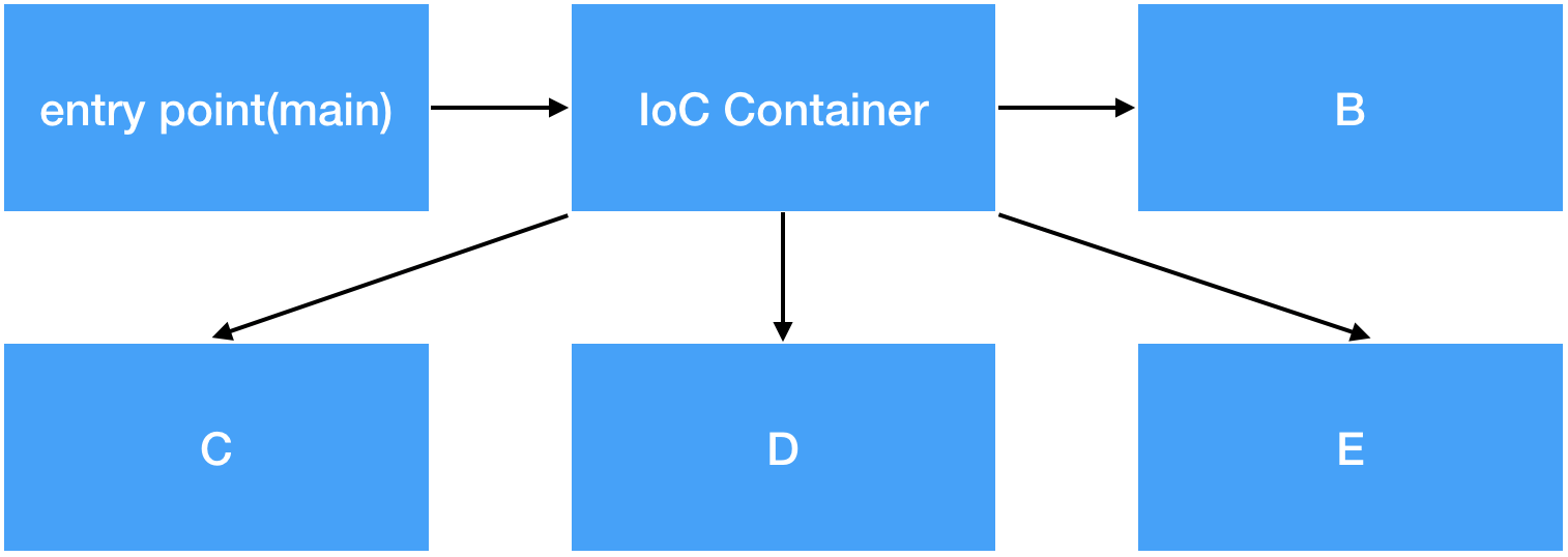 client가 IoC Container에게 필요한 Object를 요청하면 IoC Container는 SwitchButton이 필요한 object를 생성하고 관계를 wiring 하여 전달한다. 각 class들이 다른 class에 대한 dependency가 모두 사라졌으니 이제 모든 class들은 component가 될 수 있다. 그리고 분리된 모든 class들은 전부 mock으로 대체될 수 있어 testability도 높아졌다. IoC만 바뀌면 dynamic 하게 전혀 다른 동작을 하는 프로그램이 될 수도 있다.
