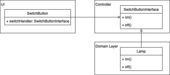 [코드 1]은 SwitchButton을 toggle하면 Lamp가 on/off되는 간단한 예제 코드다. 위 class들의 관계를 그려보면 아래와 같다.