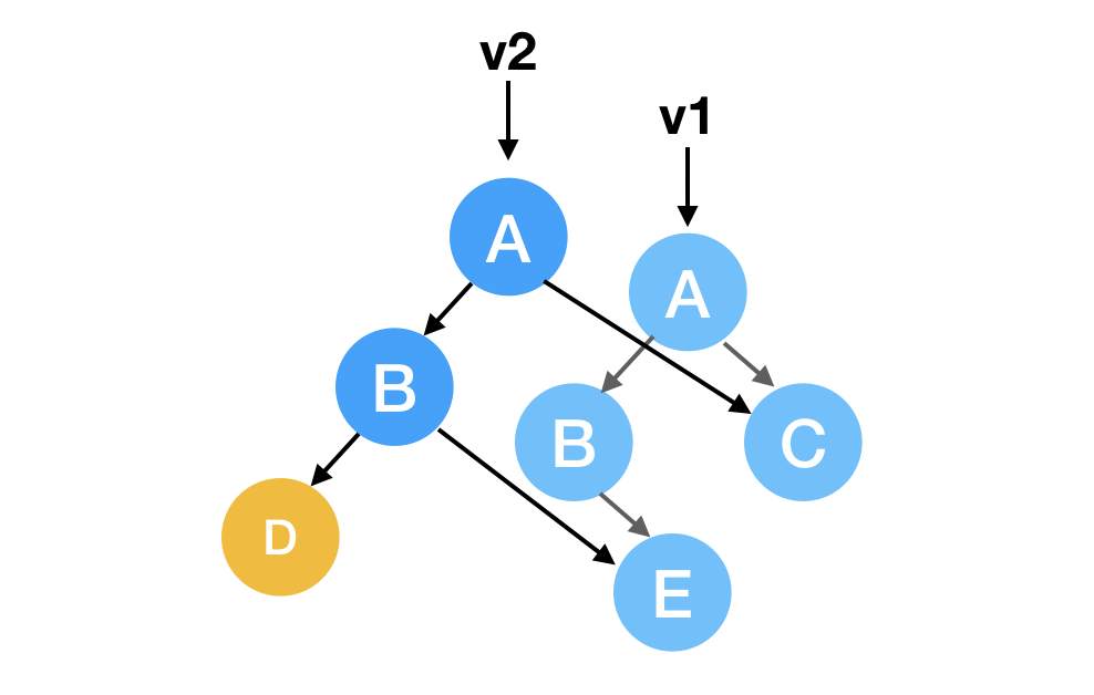 무복제 아키텍쳐인 Realm은 ACID를 보장하기 위해서 Lock이 아닌 MVCC(multiversion concurrency control)를 기반으로 설계되어 있다. [그림 1] 처럼 조회된 object A가 변경이 있을때, realm은 스냅샷을 찍고 v2를 만들어 object가 해당 버전을 바라보게 만든다. 이때 다른 thread들이 A를 접근하게 되면 v1를 조회하게 된다. 서로 다른 버전을 조회하고 변경함으로 ACID를 보장할 수 있게 된다.